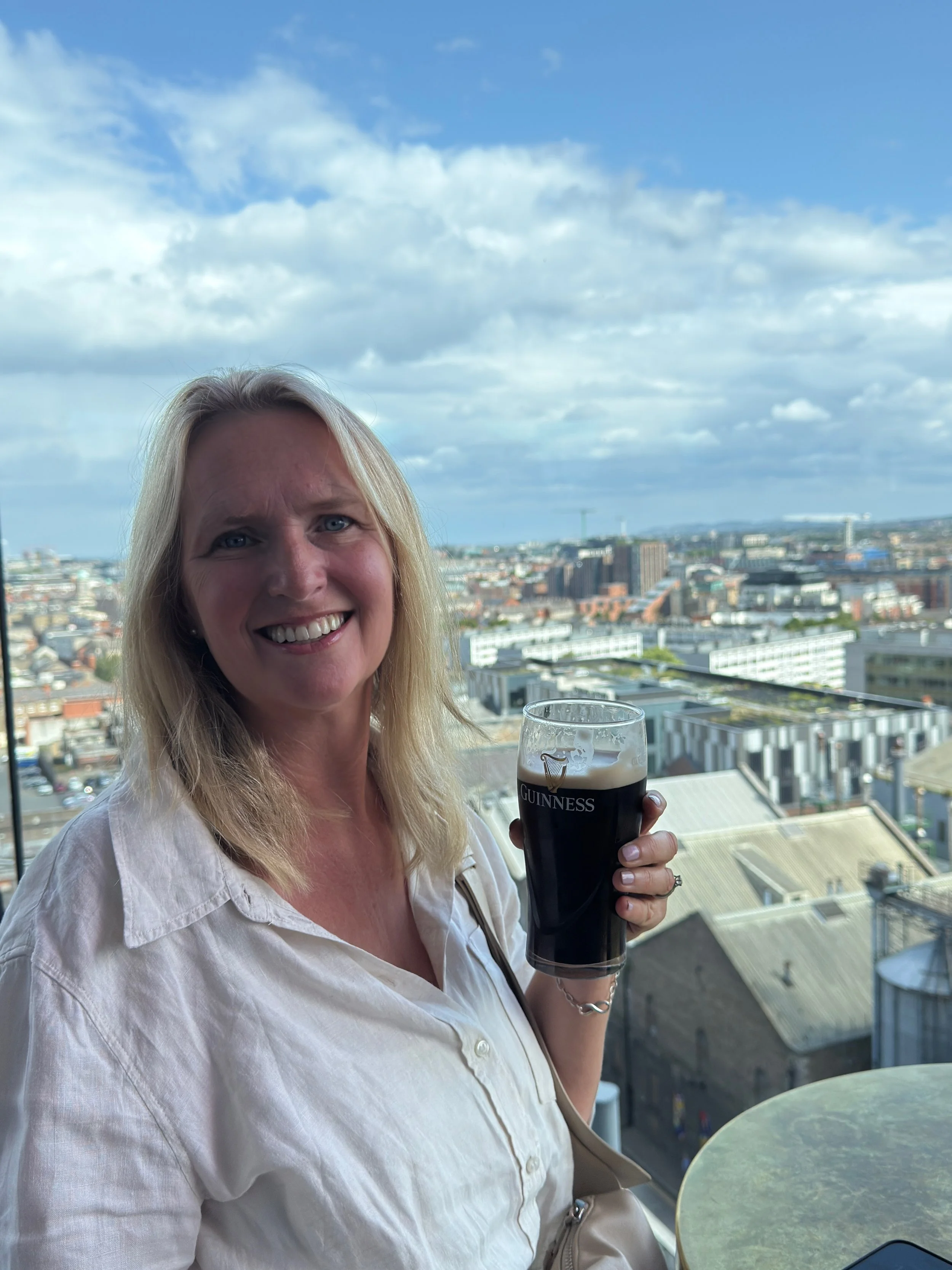Having left Liverpool, our first stop was Dublin. We opted for an included excursions to the Guinness Storehouseβ¦ twenty years after our last visit. A lot has changed since then - and not necessarily for the better. What was once a quieter, more informative experience now feels a bit like a very busy gift shop with a brewery attached. But donβt get us wrong - we still had a nice afternoon and very much enjoyed our included pint of Guinness at the Gravity Bar, seven floors up with panoramic views of Dublin.
